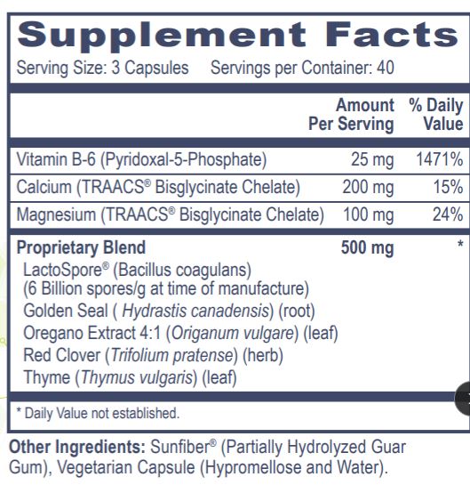 - This product features calcium citrate and magnesium orotate to directly bind with oxalates, vitamin B6 as P-5P to help support healthy metabolism of glyoxylate to glycine rather than oxalate, the potent probiotic LactoSpore® (Bacillus coagulans) to support a healthy gastrointestinal microbiome.